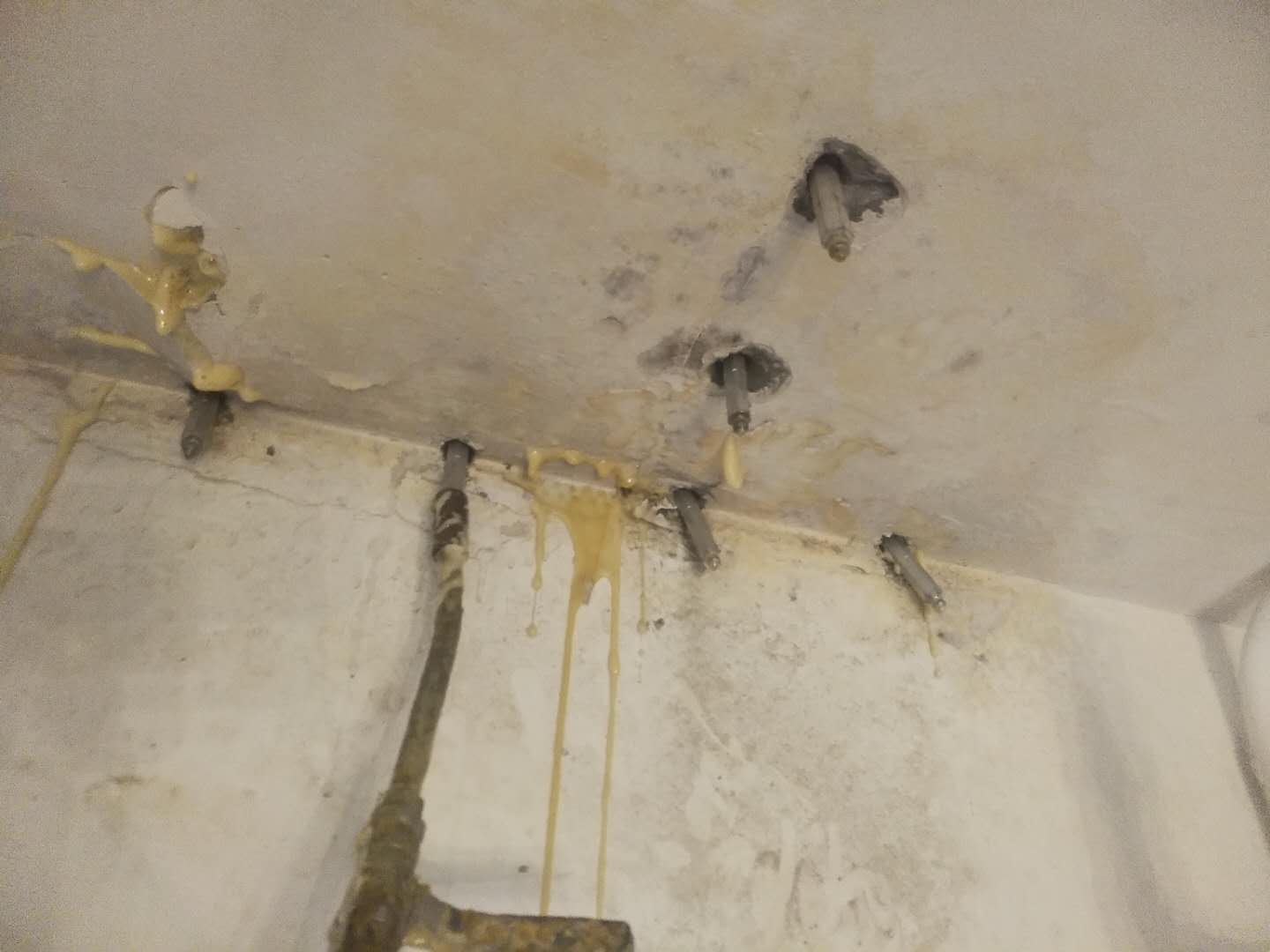 以下是對(duì)各具體工序的詳細(xì)梳理: ### 1. 查找裂縫、滲漏點(diǎn) - **裂縫產(chǎn)生原因**:主要源于變形作用,像溫度變形、收縮變形、基礎(chǔ)不均勻沉降變形等多因素。滲漏通常是由混凝土裂縫或混凝土密實(shí)度問題導(dǎo)致。 - **查找方法**:出現(xiàn)滲漏水的地方,其混凝土表面往往附有水堿痕跡,據(jù)此找準(zhǔn)裂縫和滲漏水的具體點(diǎn)位。 ### 2. 鉆機(jī)打孔 - **打孔時(shí)機(jī)**:在完成查找裂縫、滲漏點(diǎn)的施工流程后進(jìn)行。 - **打孔要求**:對(duì)準(zhǔn)裂縫縫隙以90°垂直混凝土表面打進(jìn)直孔(特殊部位或情況如建筑物陰角部位、施工部位聚集較多鋼筋等,可能改變打孔方法);在裂縫走向每隔15 - 20cm間距布一個(gè)鉆孔,孔深度為25 - 40cm(孔深一般不宜小于1/3的建筑物截面深度,不宜大于2/3的建筑物截面深度)。若鉆孔時(shí)遇到鋼筋無法達(dá)到要求孔深,宜在旁邊部位補(bǔ)孔。 ### 3. 安裝止水針頭 控制好埋設(shè)針頭的深度(便于后續(xù)敲釘、堵孔、打磨等操作),安裝好注射針頭并擰緊。 ### 4. 檢測灌漿機(jī) - **檢測內(nèi)容**:檢查灌漿機(jī)構(gòu)件、高壓管、牛油頭等是否正常,保證料斗清潔;將灌漿機(jī)通電,用清洗劑進(jìn)行清洗,查看是否存在異常現(xiàn)象。 - **后續(xù)操作**:確保正常后才可進(jìn)入下一道工序。 ### 5. 按比例配漿液 - **配液要求**:認(rèn)真閱讀材料使用說明書,按漿液配比要求進(jìn)行漿液配比(注意用刻度量杯量度,先配甲組份后配乙組份),平穩(wěn)緩慢倒進(jìn)灌漿機(jī)料斗,用木棒緩慢有序攪拌,直至液體色澤均勻、無分層即可進(jìn)行灌漿。 - **注意事項(xiàng)**:根據(jù)現(xiàn)場施工進(jìn)展配漿液,量少次多,避免一次配過多造成浪費(fèi);配好的漿液要在初凝時(shí)間內(nèi)完成使用,防止機(jī)器堵塞和漿液浪費(fèi)。 ### 6. 進(jìn)行注漿 - **注漿對(duì)接**:用牛油頭對(duì)接好止水針頭,開始正常灌漿。 - **灌漿方式**:不宜持久性灌漿,應(yīng)間斷性、有序性、有要求、有標(biāo)準(zhǔn)地施工。首先以不大于400kg/cm³d的低壓進(jìn)行慢灌,然后再以600kg/cm³左右的高壓進(jìn)行滿灌,注漿壓力控制在0.3Mpa。觀察到止水針口附近的混凝土表面出現(xiàn)溢漿即可停止灌注。同時(shí)在灌漿過程中要做到眼勤、口勤、手勤,掌握好漿液凝固時(shí)間,在有效時(shí)間內(nèi)完成所有注漿施工動(dòng)作,并在初凝時(shí)間內(nèi)完成灌注。 ### 7. 清洗注漿機(jī)械 采用優(yōu)質(zhì)的洗滌液清洗,先使用少量洗滌液清洗機(jī)內(nèi)的環(huán)氧,然后進(jìn)行循環(huán)洗滌直至干凈,清洗后將灌漿機(jī)部分卸除保管。 ### 8. 質(zhì)量檢測 過完材料的最終凝固時(shí)間,質(zhì)檢人員到現(xiàn)場進(jìn)行質(zhì)量評(píng)估。 ### 9. 敲釘、堵孔、打磨、恢復(fù)原狀 灌漿后,待縫內(nèi)漿液不外流且完全凝固,拔卸灌漿嘴,使用環(huán)氧樹脂砂漿對(duì)灌漿孔封孔,抹平修復(fù)裂縫表面,再根據(jù)現(xiàn)場施工要求進(jìn)行打磨修復(fù)。 ### 10. 驗(yàn)收、撤場 - **驗(yàn)收工作**:通知報(bào)驗(yàn),組織甲方人員、乙方人員驗(yàn)收計(jì)量。 - **撤場工作**:清理施工現(xiàn)場,做好撤場相關(guān)事宜。
