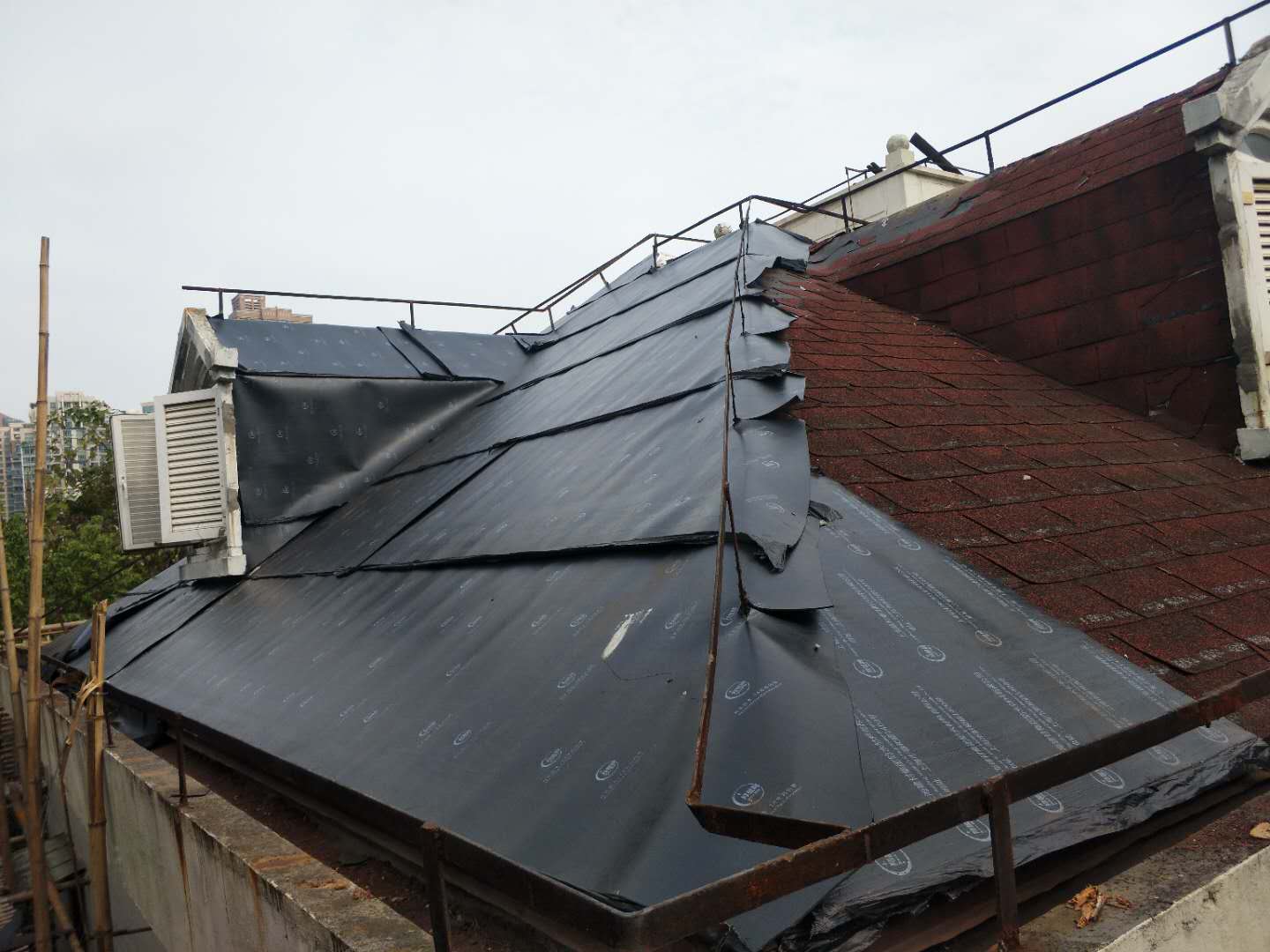 # 化工廠廠房阻燃防水工程勘查與解決方案 ## 一、工程勘查情況 在對(duì)化工廠 1#、2#、3#廠房進(jìn)行現(xiàn)場勘查后,發(fā)現(xiàn)各廠房呈現(xiàn)出不同的屋面狀況與漏雨問題。其中 1#、3#廠房漏雨現(xiàn)象較為突出,而這與多方面因素相關(guān)。 ### (一)屋面垃圾與雨水管問題 施工完畢距今已有較長時(shí)間,屋面長期積累了大量垃圾,許多雨水管被雜物封堵。一旦遭遇強(qiáng)降雨天氣,雨水無法順暢通過雨水管排出,就會(huì)從天溝與屋面板之間的縫隙回漏到室內(nèi),從而造成滲漏。 ### (二)屋面板材接縫與破損問題 自屋面施工完成后,長時(shí)間未進(jìn)行維護(hù)和修補(bǔ),致使屋面部分板面(包括陽光瓦)出現(xiàn)接縫不嚴(yán)以及破損情況。這些薄弱部位在雨水沖刷下,無法有效阻擋雨水滲透,進(jìn)而導(dǎo)致局部漏雨現(xiàn)象頻發(fā)。 ### (三)屋面坡度與接縫設(shè)計(jì)問題 屋面設(shè)計(jì)坡度較小,不利于雨水的快速排放,容易造成積水。加之屋面板接縫本身不夠嚴(yán)密,當(dāng)降雨量較大時(shí),積水達(dá)到一定厚度便會(huì)沿接縫處倒流回灌到板內(nèi),屋脊部位尤為嚴(yán)重,因?yàn)樵搮^(qū)域是雨水匯集的關(guān)鍵部位,積水深度相對(duì)更大,滲漏風(fēng)險(xiǎn)也就更高。 ### (四)屋面靠近天溝部位的板材問題 在靠近天溝 600 范圍內(nèi),屋面板局部板材面固定點(diǎn)出現(xiàn)松動(dòng)甚至塌陷,面層板也有部分板面產(chǎn)生折斷裂口,這些問題直接導(dǎo)致雨水滲漏。此外,部分靠近天溝的屋面板因上屋面作業(yè)人員頻繁踩踏,板面上翹并出現(xiàn)裂縫,使得雨水能夠輕易滲漏到室內(nèi)。 ## 二、防水做法與修補(bǔ)方案 ### (一)確定防水做法 綜合考慮東方屋面防水施工的特點(diǎn)以及化工廠廠房的實(shí)際需求,確定廠房屋面防水采用基層為一布三油,面層為 4 厚 SBS 防水卷材的方案。這種組合能夠?yàn)槲菝嫣峁┹^為可靠的防水屏障,一布三油基層可以增強(qiáng)屋面基層的防水性能和抗裂能力,4 厚 SBS 防水卷材則具備良好的耐候性、防水性和抗拉伸性能,兩者相輔相成,有效抵御雨水侵蝕。 ### (二)具體修補(bǔ)方案 1. **清理屋面與疏通雨水管** 首先安排專業(yè)人員對(duì)屋面垃圾進(jìn)行全面清理,將堆積在屋面上的雜物、灰塵等徹底清除,同時(shí)對(duì)堵塞的雨水管進(jìn)行疏通,確保雨水排放系統(tǒng)暢通無阻。此步驟能夠有效解決因屋面垃圾堆積和雨水管封堵導(dǎo)致的漏雨問題,恢復(fù)屋面正常的排水功能。 2. **雨后漏點(diǎn)標(biāo)記與局部點(diǎn)修補(bǔ)** 在降雨過后,及時(shí)對(duì)屋面的漏點(diǎn)進(jìn)行精確標(biāo)記。根據(jù)標(biāo)記位置,針對(duì)屋面有接縫不嚴(yán)和破損的局部板面(含陽光瓦)進(jìn)行細(xì)致的修補(bǔ)工作。修補(bǔ)過程中,將對(duì)損壞的板材進(jìn)行更換或修復(fù),對(duì)接縫處進(jìn)行重新密封處理,確保局部區(qū)域的防水性能得到恢復(fù),從而消除因局部板面問題引發(fā)的漏雨隱患。 3. **屋脊部位通長修補(bǔ)防水** 針對(duì)屋脊部位因坡度和接縫問題導(dǎo)致的嚴(yán)重滲漏情況,在屋脊部位每側(cè) 700 范圍內(nèi)進(jìn)行通長修補(bǔ)防水作業(yè)。施工時(shí),將嚴(yán)格按照防水工藝要求,先對(duì)基層進(jìn)行處理,確保基層平整、干燥、無灰塵,然后鋪設(shè)一布三油基層,并在其上鋪設(shè) 4 厚 SBS 防水卷材,卷材鋪設(shè)應(yīng)平整、無氣泡、無褶皺,且卷材之間的搭接寬度應(yīng)符合規(guī)范要求,通過這一系列措施有效防止雨水在屋脊部位的倒流回灌,確保該區(qū)域的防水效果。 4. **天溝兩側(cè)補(bǔ)加防水** 對(duì)于靠近天溝 600 范圍內(nèi)因板材固定點(diǎn)松動(dòng)、塌陷、折斷裂口以及上屋面作業(yè)人員踩踏導(dǎo)致的滲漏問題,在天溝兩側(cè) 600 范圍內(nèi)補(bǔ)加防水。具體操作包括對(duì)松動(dòng)和塌陷的固定點(diǎn)進(jìn)行加固修復(fù),對(duì)有折斷裂口和裂縫的板面進(jìn)行處理,然后在該區(qū)域增加防水卷材的鋪設(shè)層數(shù)和寬度,加強(qiáng)防水處理,形成一道嚴(yán)密的防水防線,有效阻止雨水從該區(qū)域滲漏到室內(nèi)。 通過以上勘查分析與針對(duì)性的修補(bǔ)方案實(shí)施,有望全面解決化工廠廠房的漏雨問題,提高廠房的防水性能,確保廠房內(nèi)部生產(chǎn)設(shè)備和物資不受雨水侵蝕,為化工廠的正常生產(chǎn)運(yùn)營提供有力保障。